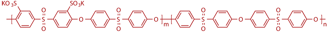 磺化單體與4,4‘-二氯二苯砜、雙酚S直接無(wú)分水條件下聚合,反應(yīng)活性高,無(wú)需高溫聚合以及高溫溶劑,分子量、磺化度即離子交換容量以及磺酸基團(tuán)位置得到精確控制,重復(fù)性得以保障,聚合快速,生產(chǎn)周期短、能耗低,實(shí)現(xiàn)低碳排放生產(chǎn)。