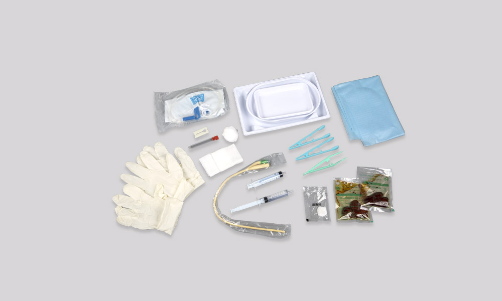 [結(jié)構(gòu)及組成] 產(chǎn)品由包布、洞巾、方巾、腰盤、器械盤、注水筒、鑷子、管夾、引流袋、導(dǎo)尿管、導(dǎo)尿管標簽、橡膠檢查手套或滅菌橡膠外科手套、薄膜手套、試管、碘伏棉球、硅油棉球或硅油無紡布片、棉球、紗布塊組成。